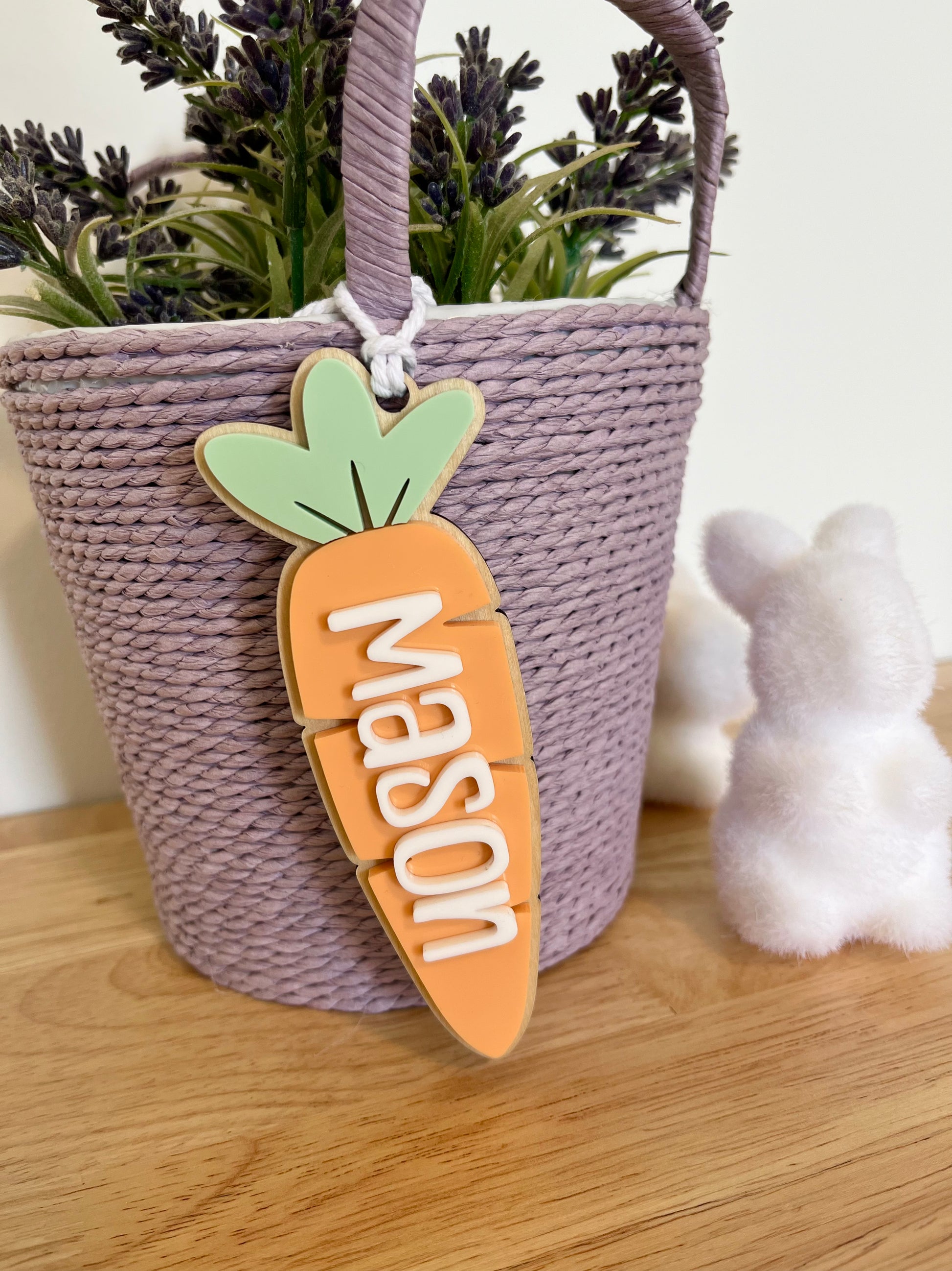 Hop into Easter with our super cute carrot basket tags, personalised for use year after year.