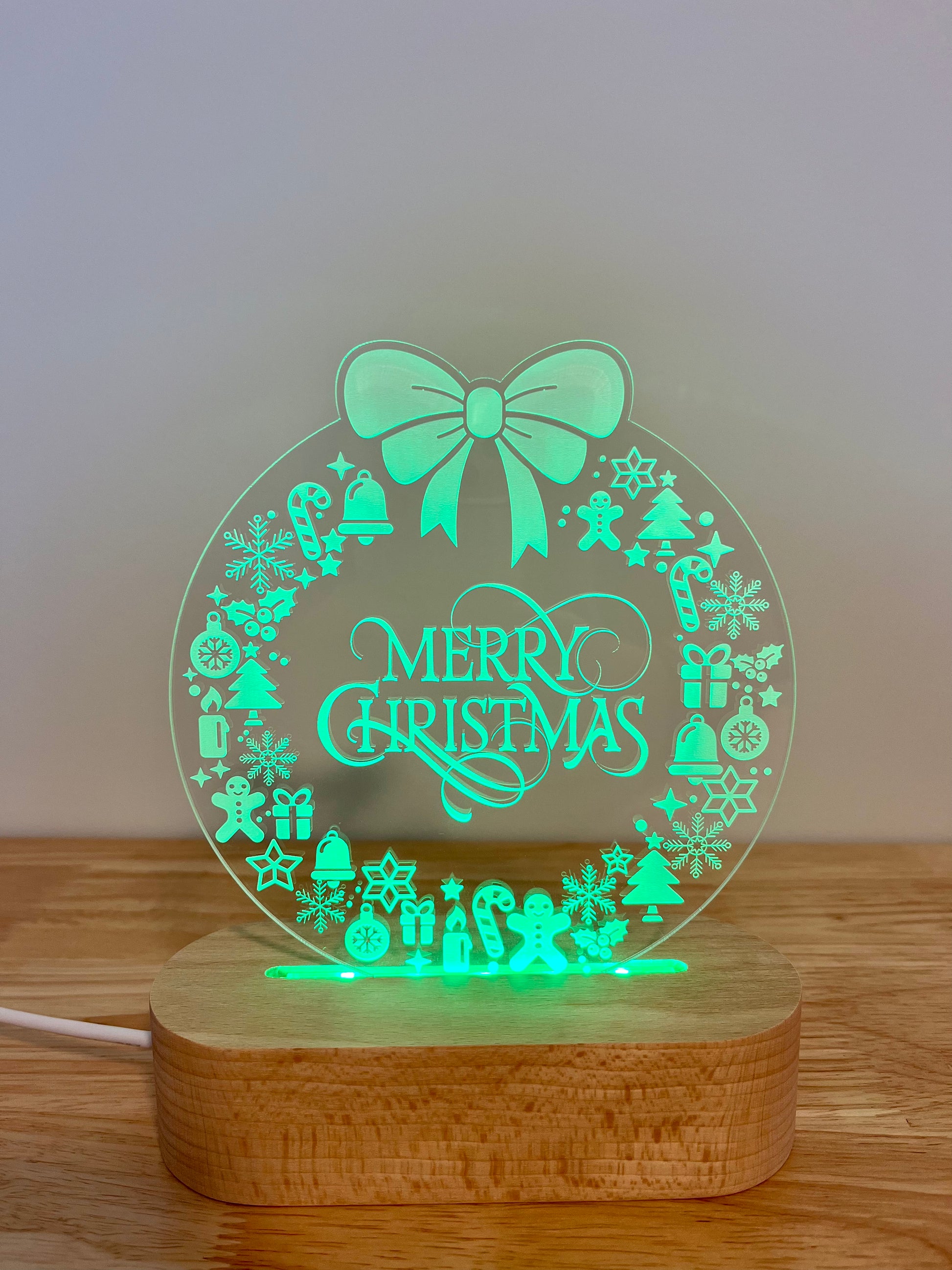 Elevate your festive décor with our beautiful Merry Christmas Wreath Night Light.