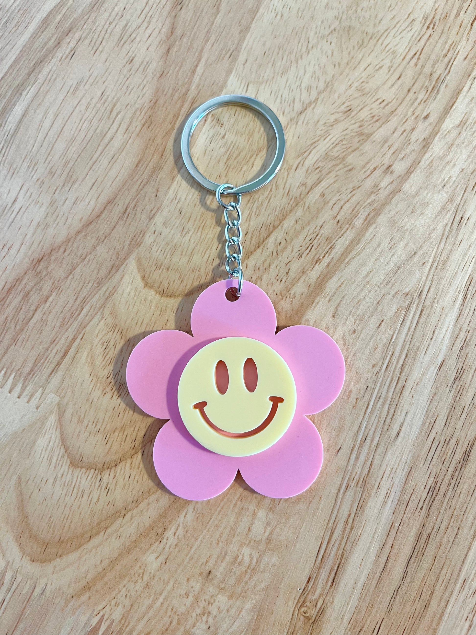 Add a pop of colour and joy to your everyday with our Smiley Flower Keyrings!